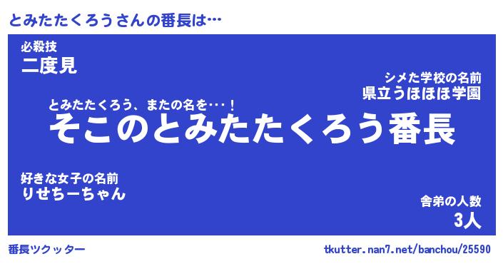 | ヒーロー風カッコイイあだ名 | 『スーパートミタタクロウ』 |