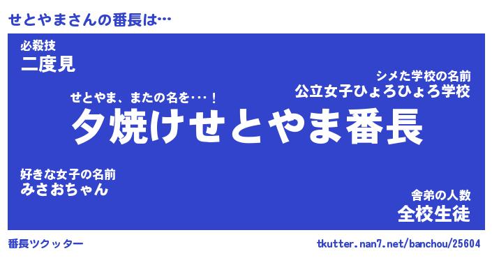 | ポケモン風あだ名 | 『セトチュウ』『セトヤダネ』 |
