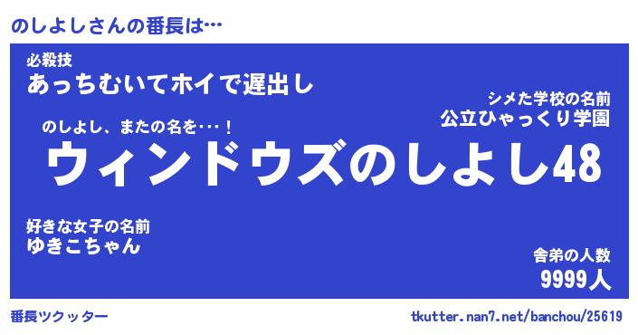 | ファンタジー風あだ名 | 『ノシフェル』『エターナルノシヨシー』 |