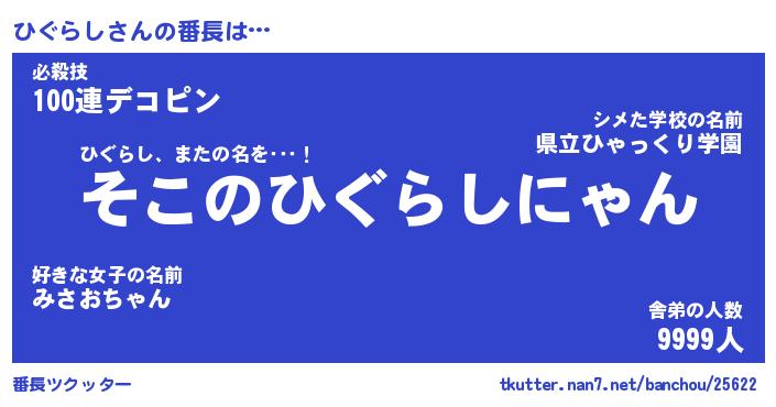 | 意味不明あだ名 | 『ペロリンひぐらし』『永久保存ひぐらし』 |