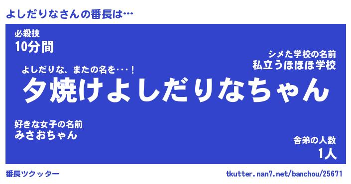 | ファンタジー風あだ名 | 『ヨシフェル』『エターナルヨシダリナー』 |