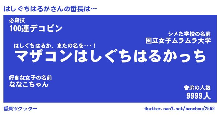 | 伝説のあだ名 | 『封印されしスナイパーはしぐちはるか』 |