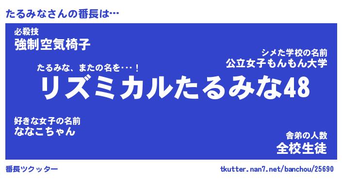 | 伝説のあだ名 | 『伝説のスナイパーたるみな』 |