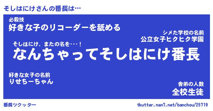 | 肩書あだ名 | 『そしはにけCEO』『そしはにけ総理大臣』 |