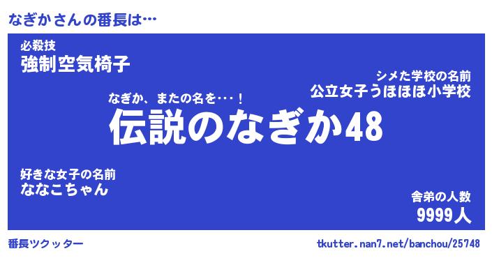 | ヒーロー風カッコイイあだ名 | 『スーパーナギカ』『ウルトラなぎかマン』 |