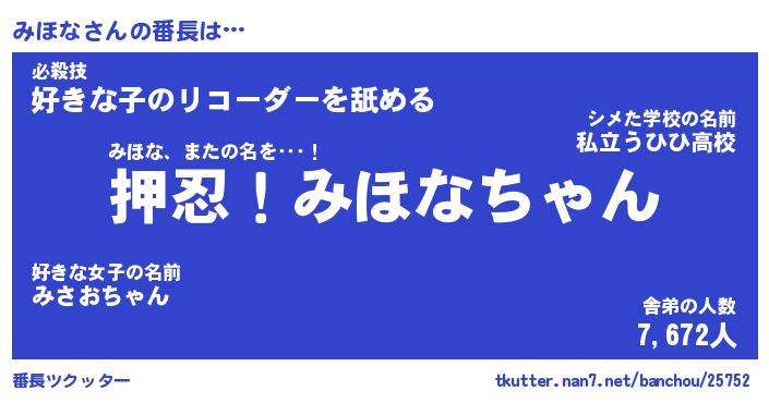 | 意味不明あだ名 | 『ペロリンみほな』『みほなフォーエバー』 |