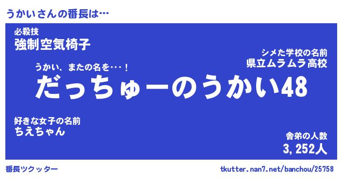 | ヘコむあだ名 | 『うかにゅー』『牛乳』『うかっ子』 |