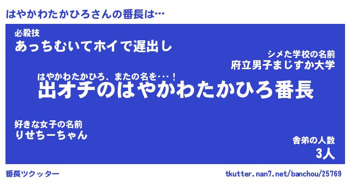 | 肩書あだ名 | 『はやかわたかひろ店長』 |