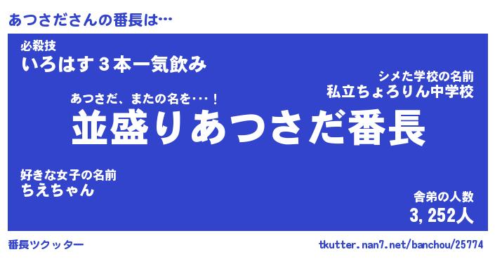 ヘコむあだ名 | 『あつにゅー』『なまこ酢』『あつお』 |