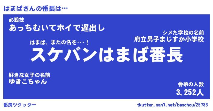 | ヒーロー風カッコイイあだ名 | 『スーパーハマバ』『ウルトラはまばマン』 |