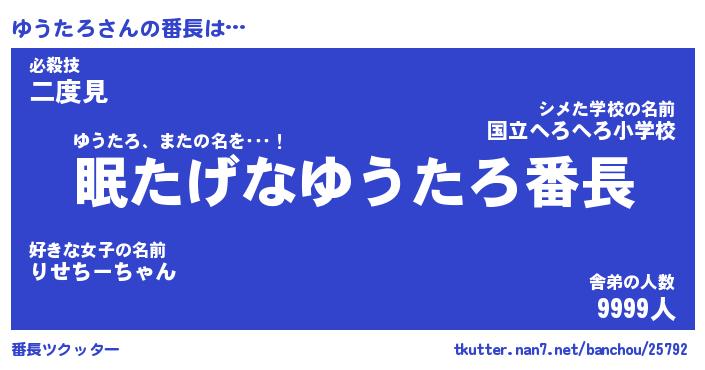 | ヒーロー風カッコイイあだ名 | 『スーパーユウタロ』『炎刃騎士ユウ』 |