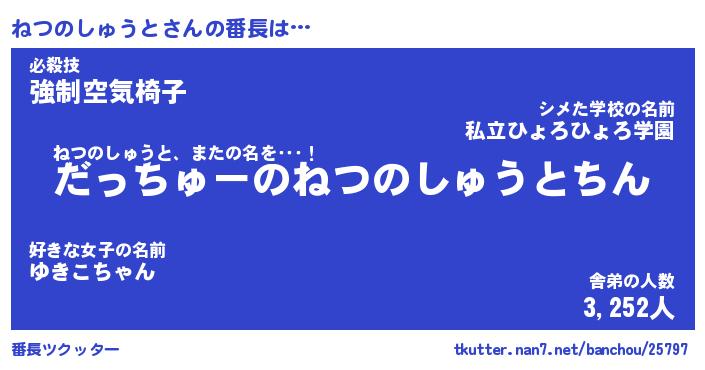 | ヒーロー風カッコイイあだ名 | 『スーパーネツノシュウト』 |