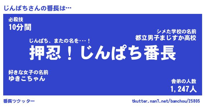 | 伝説のあだ名 | 『封印されしスナイパーじんぱち』 |