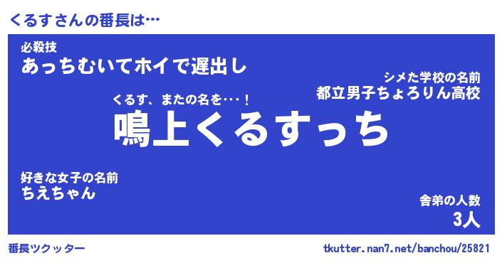 | ヒーロー風カッコイイあだ名 | 『スーパークルス』『ウルトラくるすマン』 |