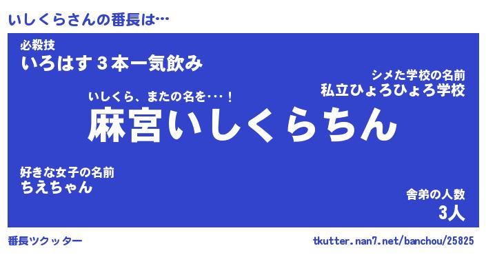 | 意味不明あだ名 | 『ペロリンいしくら』『永久保存いしくら』 |