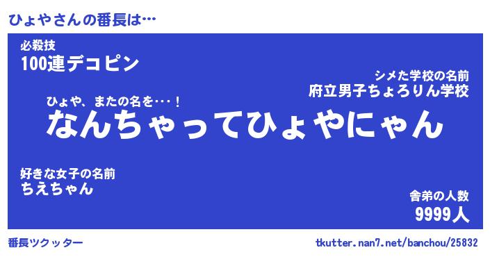 | ヒーロー風カッコイイあだ名 | 『スーパーヒョヤ』『ウルトラひょやマン』 |