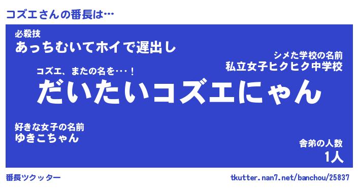 | 肩書あだ名 | 『コズエ社長』『コズエ大統領』 |