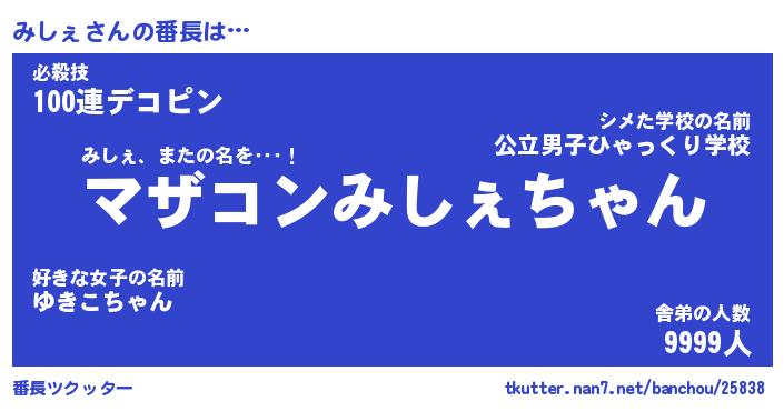 | ヘコむあだ名 | 『みしにゅー』『つくし』『みしお』 |