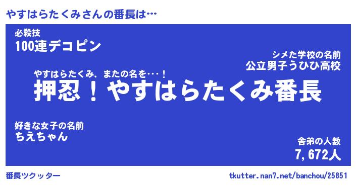 | 伝説のあだ名 | 『封印されしスナイパーやすはらたくみ』 |