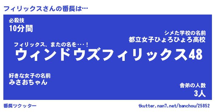 | 伝説のあだ名 | 『伝説のスナイパーフィリックス』 |