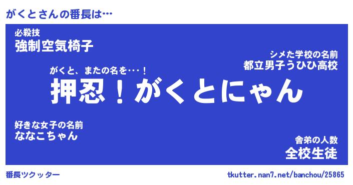| 肩書あだ名 | 『がくと社長』『がくと総理大臣』 |