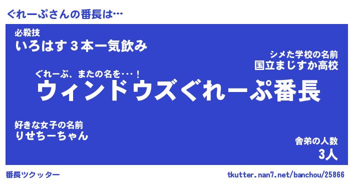 | 意味不明あだ名 | 『ペロリンぐれーぷ』『永久保存ぐれーぷ』 |