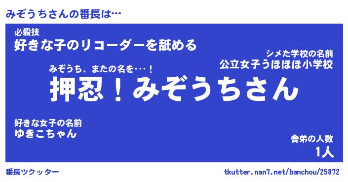 | ピコ太郎風あだ名 | 『ミコ四郎』『ピミ史郎』『ミゾ太郎』 |