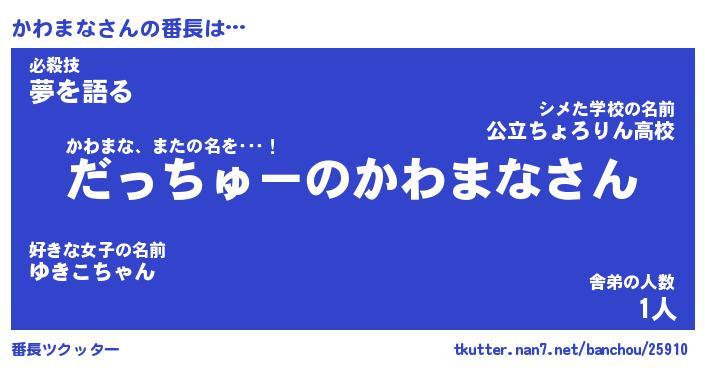 | 伝説のあだ名 | 『伝説のスナイパーかわまな』 |