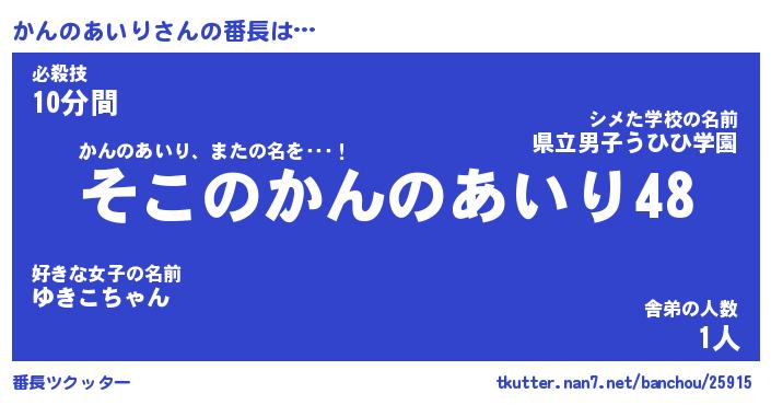 | ヒーロー風カッコイイあだ名 | 『スーパーカンノアイリ』『魔戒騎士カン』 |