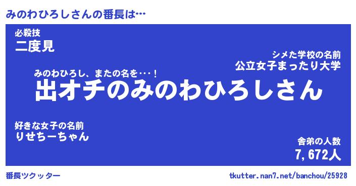 | 伝説のあだ名 | 『伝説のスナイパーみのわひろし』 |