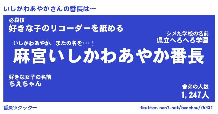 | 肩書あだ名 | 『いしかわあやか店長』 |