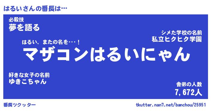 | 2回繰り返すあだ名 | 『はるはる』『ははるる』『ねちねち』 |