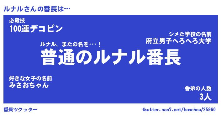 | ヒーロー風カッコイイあだ名 | 『スーパールナル』『ウルトラルナルマン』 |