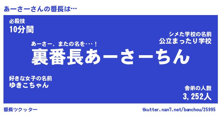 | 意味不明あだ名 | 『ペロリンあーさー』『永久保存あーさー』 |