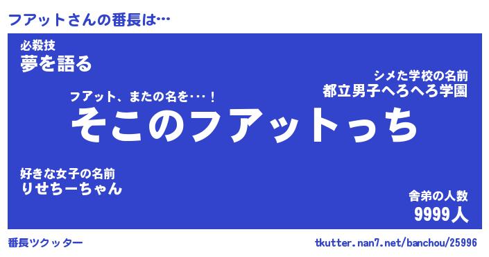 | 意味不明あだ名 | 『ペロリンフアット』『永久保存フアット』 |