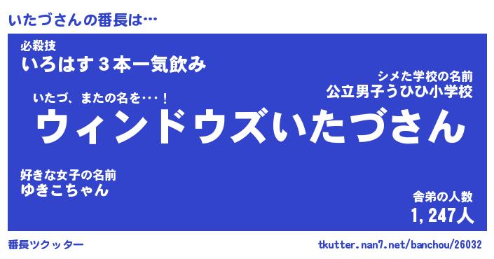 | 意味不明あだ名 | 『ペロリンいたづ』『いたづフォーエバー』 |