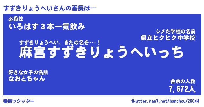 | ピコ太郎風あだ名 | 『スコ次郎』『ピス一郎』『スズ三郎』 |