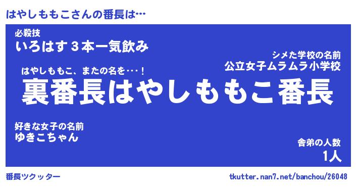 | 伝説のあだ名 | 『不死鳥のスナイパーはやしももこ』 |