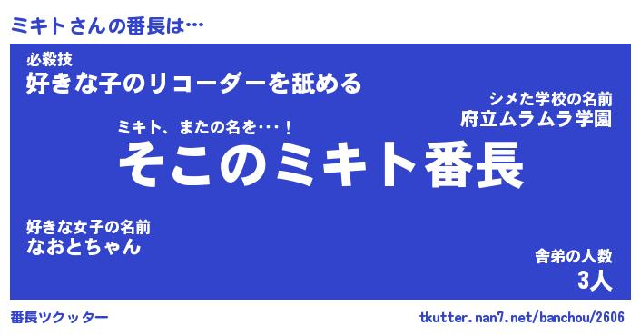 | ヒーロー風カッコイイあだ名 | 『スーパーミキト』『ウルトラミキトマン』 |