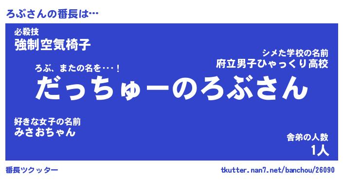 | ヘコむあだ名 | 『ろぶもー』『つくし』『ろぶを』 |