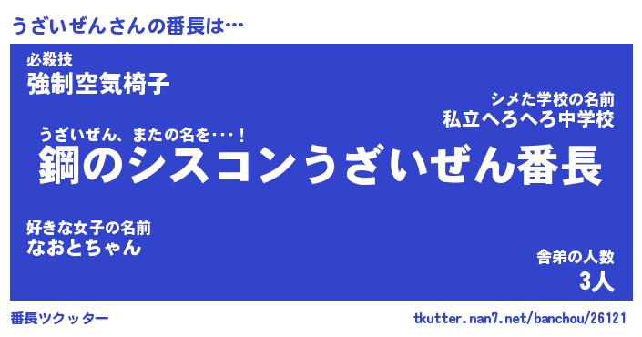 | ヒーロー風カッコイイあだ名 | 『スーパーウザイゼン』『魔戒騎士ウザ』 |