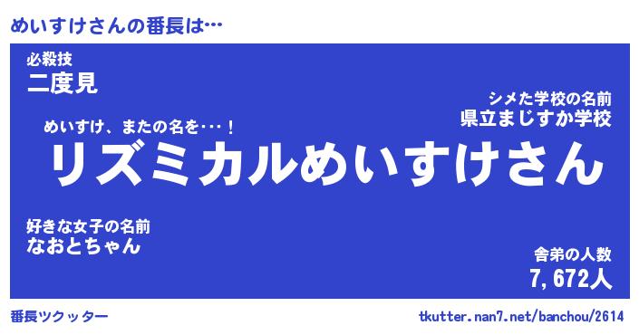 | 欧米人風あだ名 | 『マイケルめいすけ』『ウサインめいすけ』 |