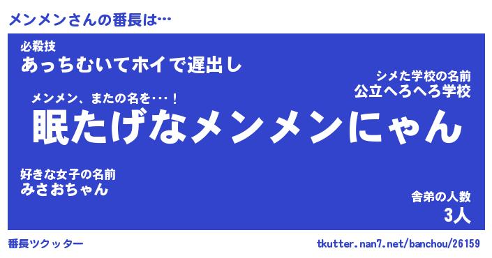 | ファンタジー風あだ名 | 『メンフェル』『エターナルメンメンー』 |