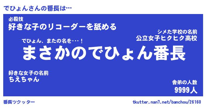 | 肩書あだ名 | 『でひょん店長』『でひょん国家主席』 |