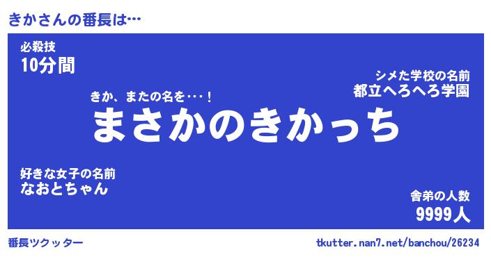 | ヒーロー風カッコイイあだ名 | 『スーパーキカ』『ウルトラきかマン』 |