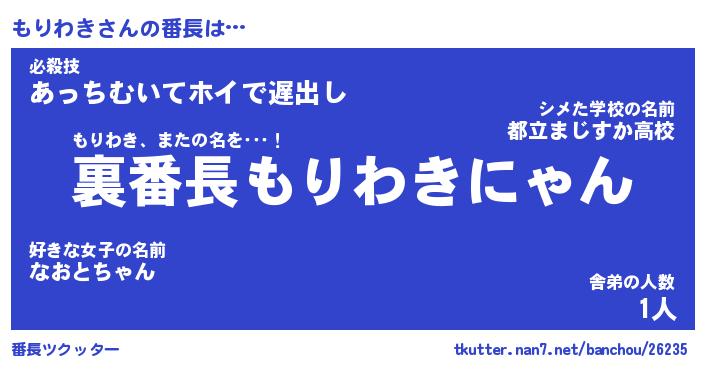 | ファンタジー風あだ名 | 『モリフェル』『エターナルモリワキー』 |