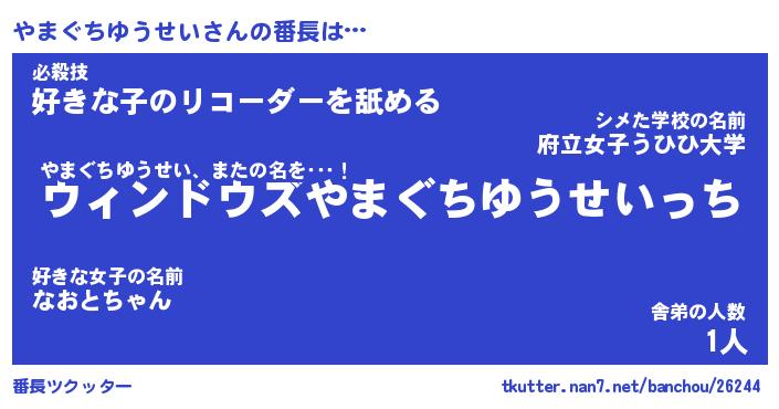 | 意味不明あだ名 | 『ペロリンやまぐちゆうせい』 |