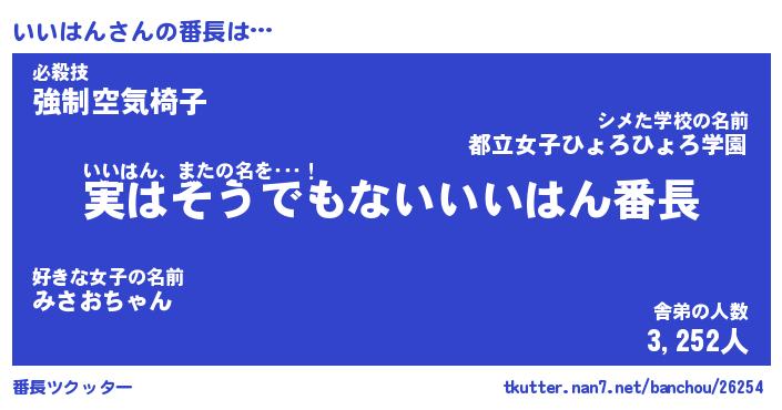 | 意味不明あだ名 | 『ペロリンいいはん』『永久保存いいはん』 |