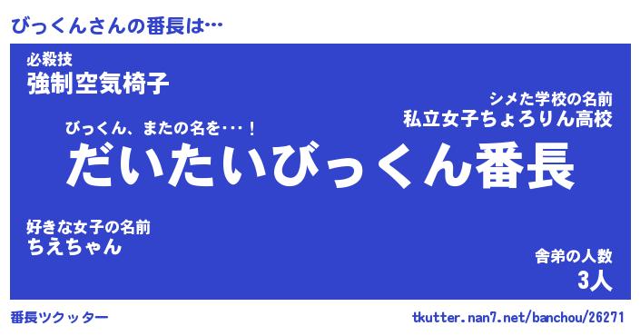 | 男性向けラノベタイトル風あだ名 | 『びっくんの憂鬱』 |