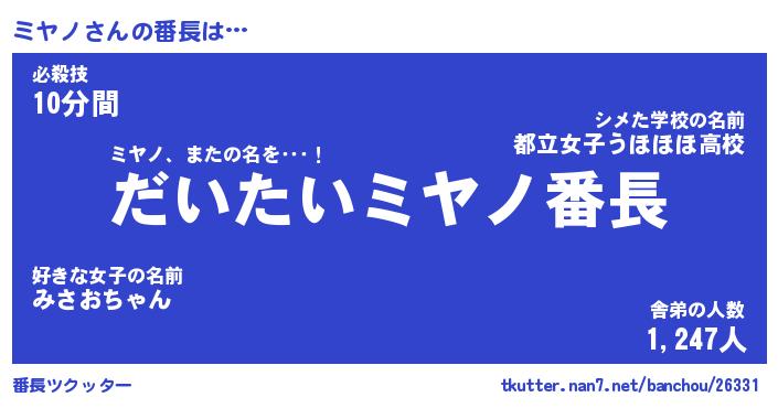 | ヘコむあだ名 | 『ミヤにー』『牛乳』『ミヤぷりん』 |
